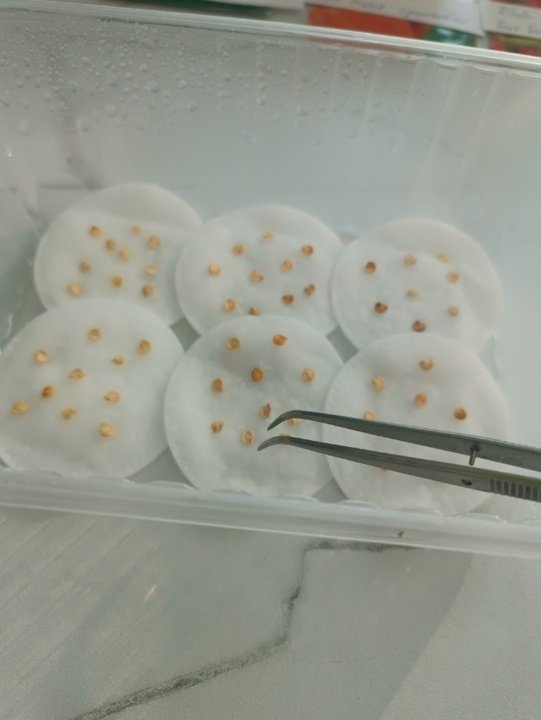 Для проращивания семян подойдут ватные диски или любая мягкая ткань. Марля - не самый лучший материал, т.к. есть риск врастания корешка. По желанию, в воду можно добавить Фитоспорин, HB-101, Энерген, Аминоцимус или Аминосил в мягкой дозировке.